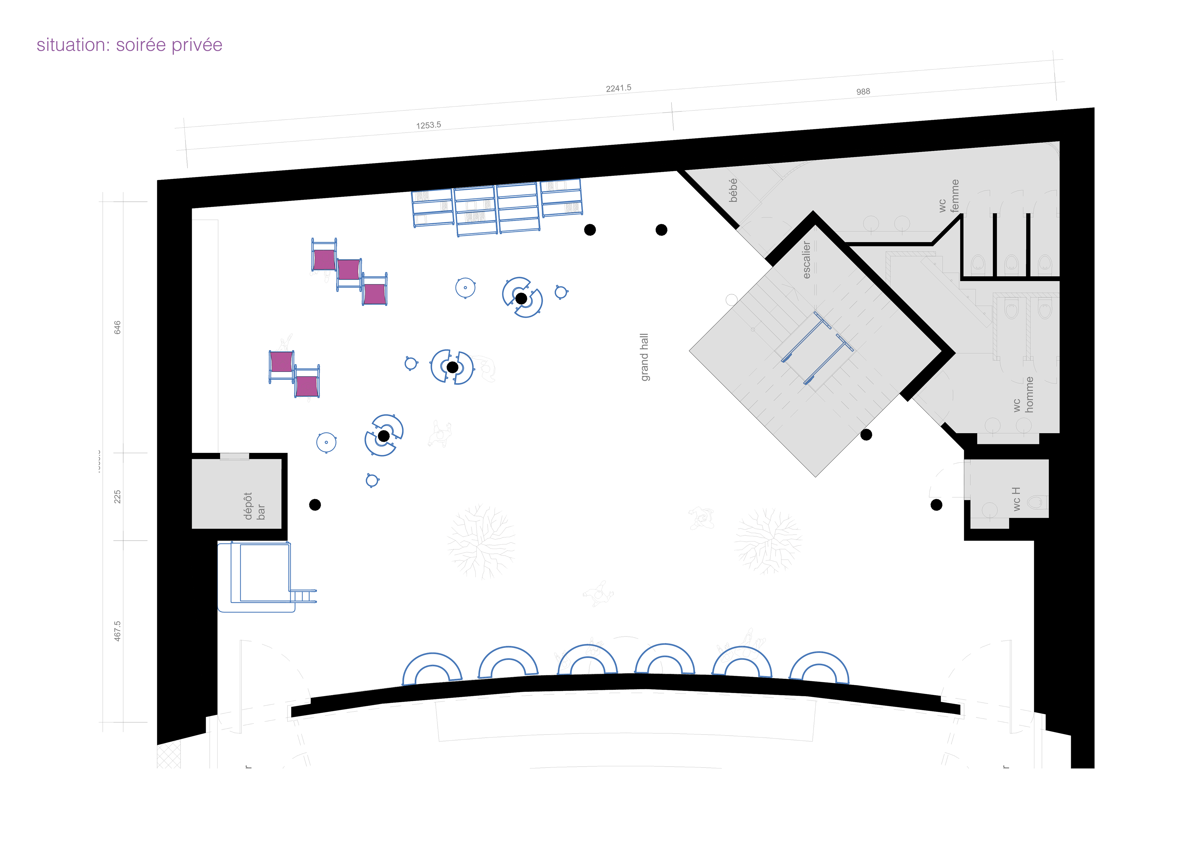 Ce système offre une liberté d’usage pour tous les publics et fait de la grande salle un véritable terrain d’expérimentation, où l’interaction et l’imaginaire deviennent moteurs de l’aménagement.