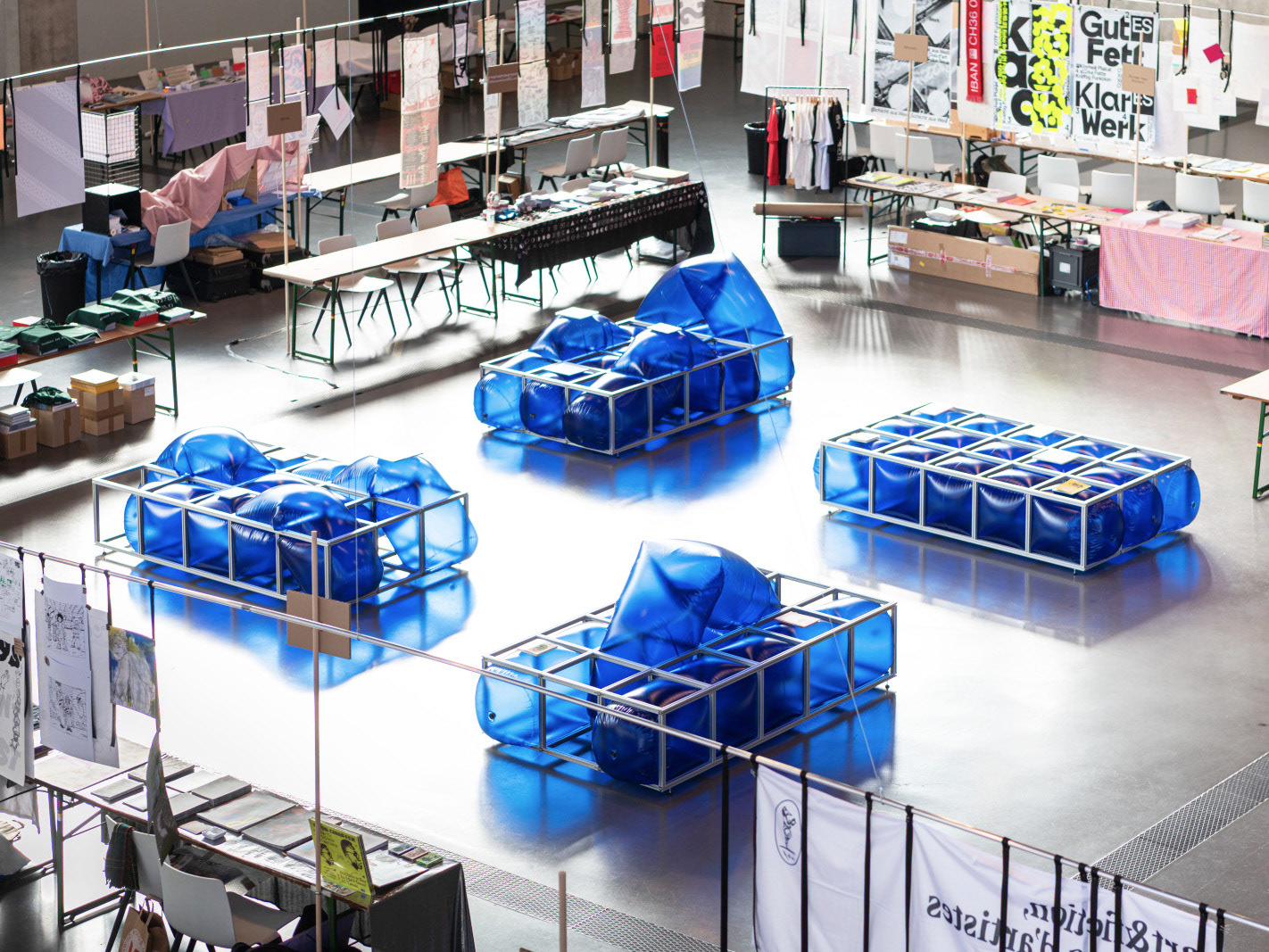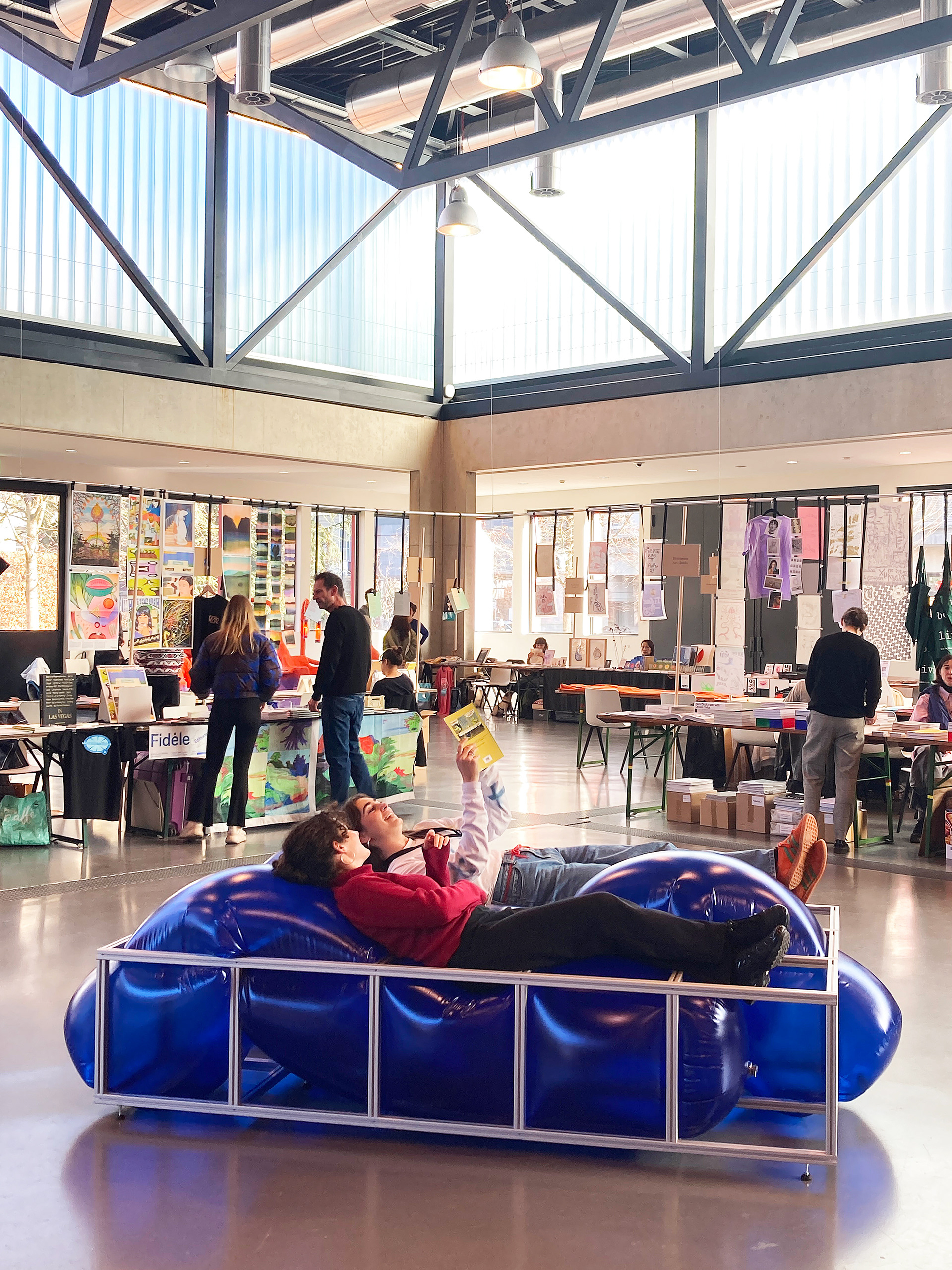 Ce dispositif a permis de créer un espace hybride, à la fois mobilier, présentoir et sculpture, favorisant la lecture, la rencontre et l’exploration au cœur de la foire.
