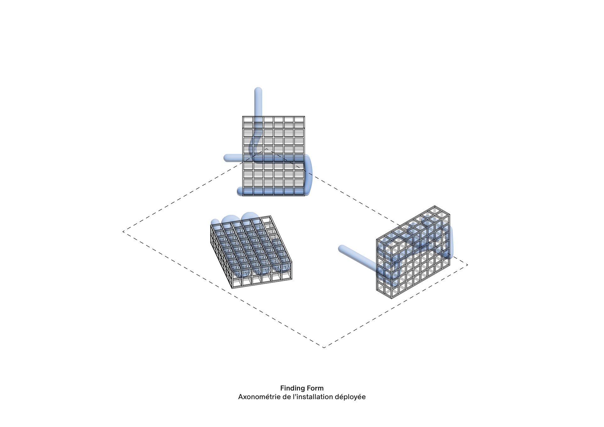 L’installation devait répondre à plusieurs contraintes, être facilement montables et démontable, s’adapter à différents types de corps et d’usages, et pouvoir être stockée dans un encombrement minimal.